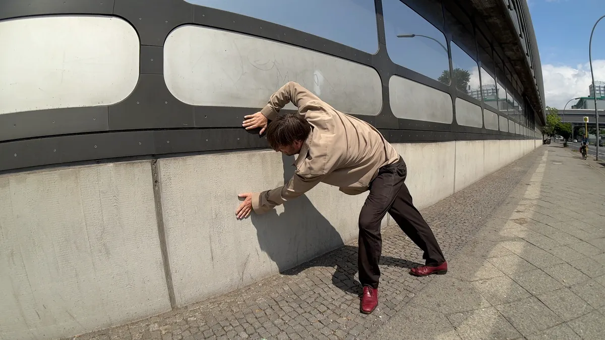 Reenacting familiar actions while pursuing new paths, the artist invites the audience to follow his attempt to liberate himself from his past through a tedious journey across Berlin. Rough Trade opens a new chapter in Schmidt's audio visual work, abandoning linear narrative in favour of a sequence of scenes that unfold like a dreamscape of emotionally charged moments and intimate encounters. Here Schmidt explores themes of power, control, and the desire to escape a world seemly on the verge of collapse.