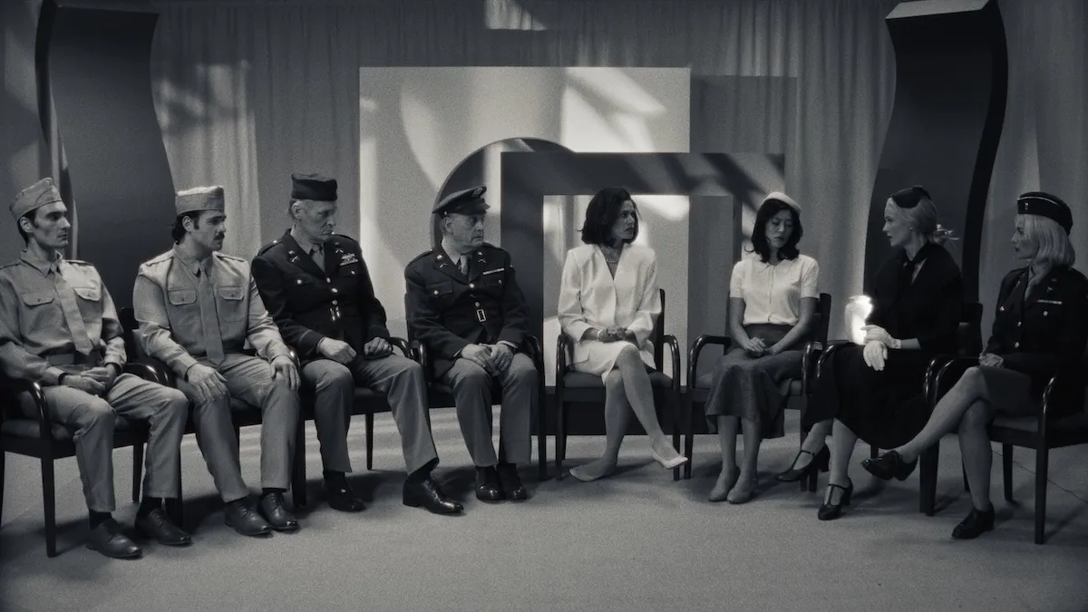 TALK SHOW is the final film in Jordan Strafer’s Loophole trilogy. The narrative unfolds across two timelines: the turn of the millennium, shot in color, and the afterlife, shot in black and white. Structured around a talk show, the work examines 1990s celebrity culture, violence against women, and justice as televised spectacle. Its screenplay draws on sources ranging from news footage to self-help media, blending historical fact with fiction.